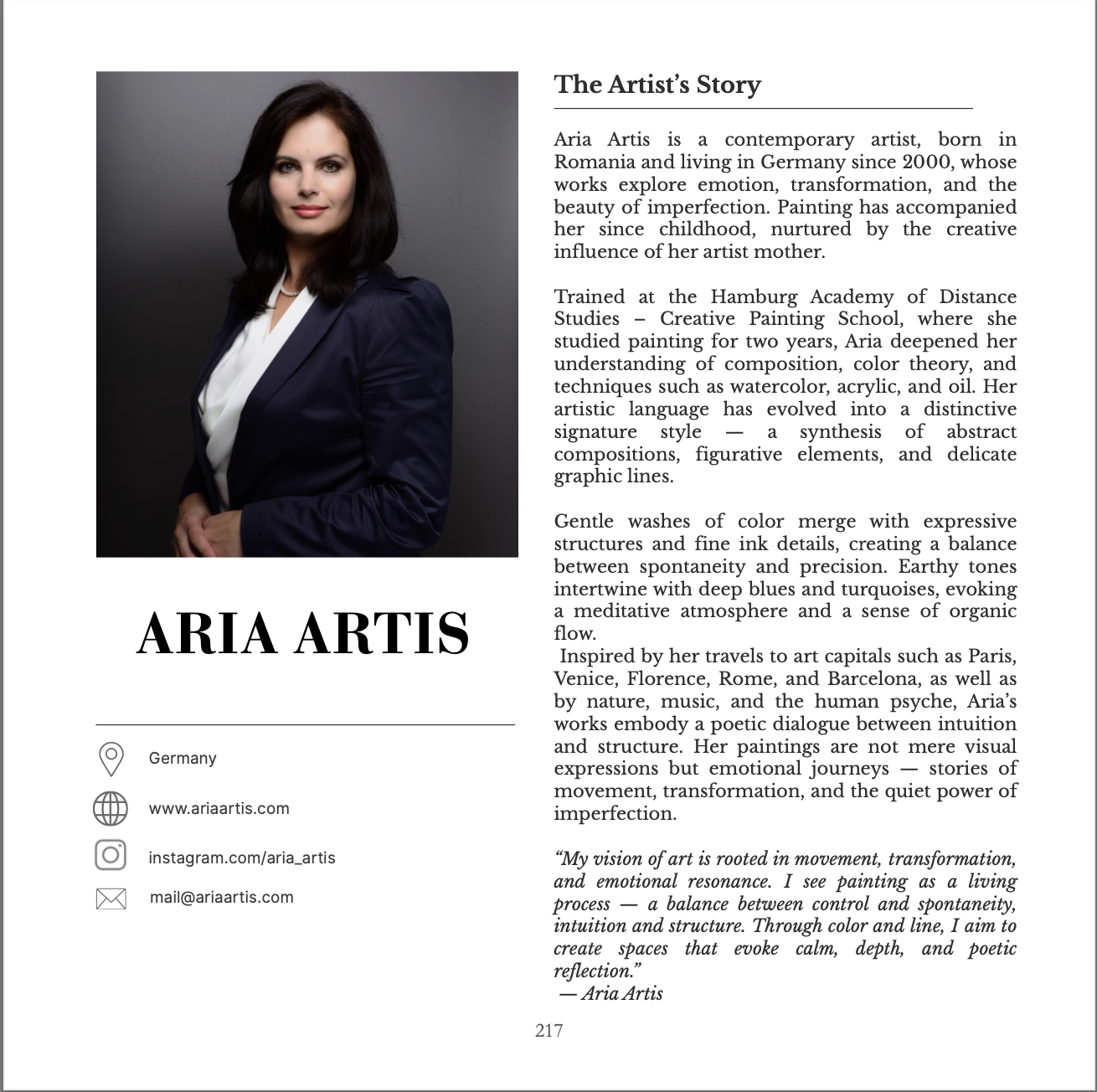 Ich freue mich, Teil des kuratierten Kunstbands „100 Artists of Europe“ (Culturale Lab, Italien) zu sein, der zeitgenössische Künstler*innen aus verschiedenen europäischen Ländern zusammenbringt.